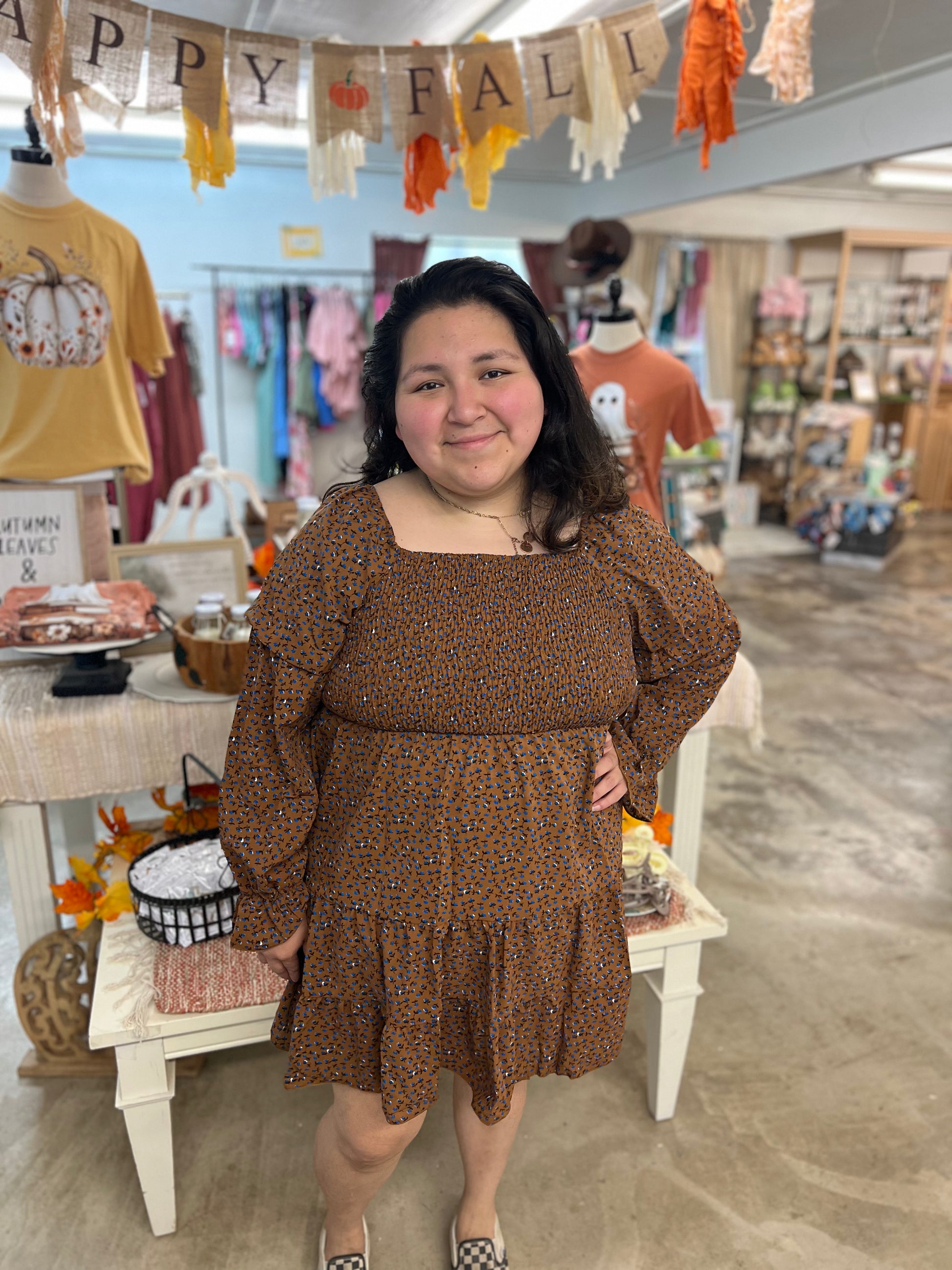 Brown Waistline A-line Dress