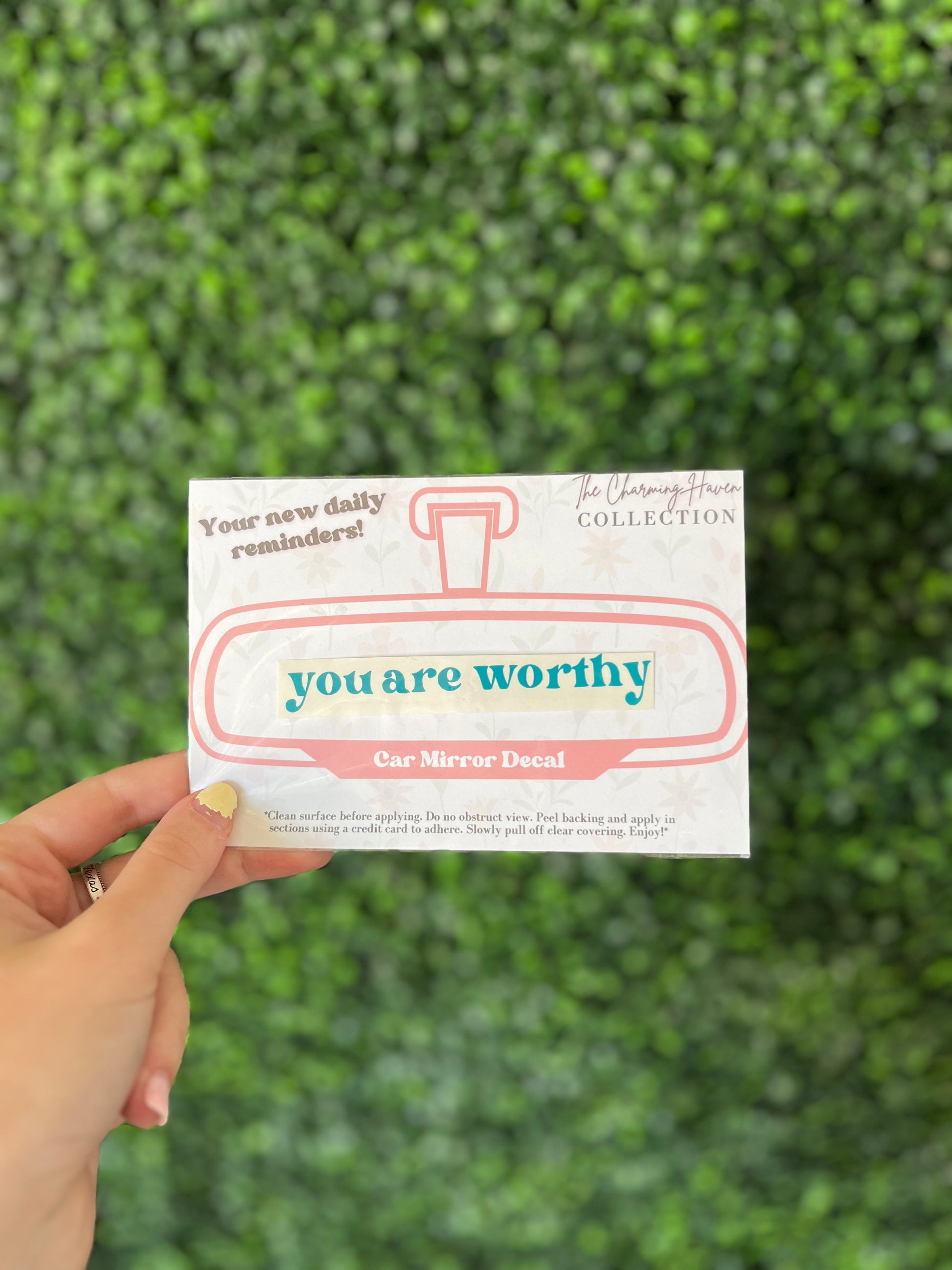 Our Rearview Mirror Decals are small but powerful reminders of encouragement made to brighten your drive and your day. Designed to hang easily from your mirror, each decal features uplifting words to refocus your heart and mind—because sometimes all it takes is a little reminder in the rearview to keep moving forward.