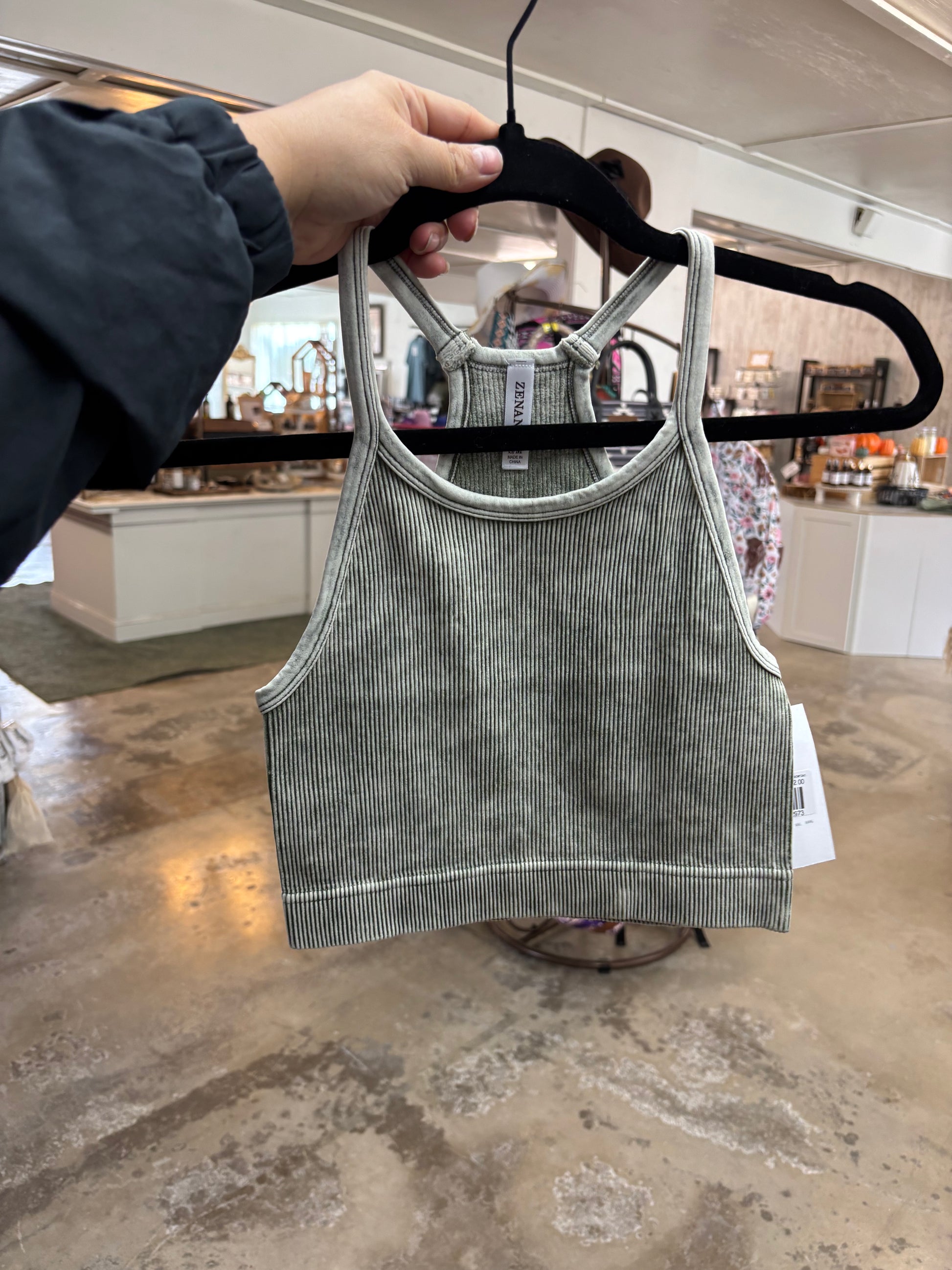 Effortless style meets all-day comfort in this premium washed halter racerback crop tank. Crafted from ultra-soft, seamless stretch fabric, it offers a smooth, flattering fit that moves with you. The washed finish adds a vintage touch, while the halter neckline and racerback cut give it a sporty, chic edge. Perfect for layering or wearing solo with your favorite high-waisted bottoms.