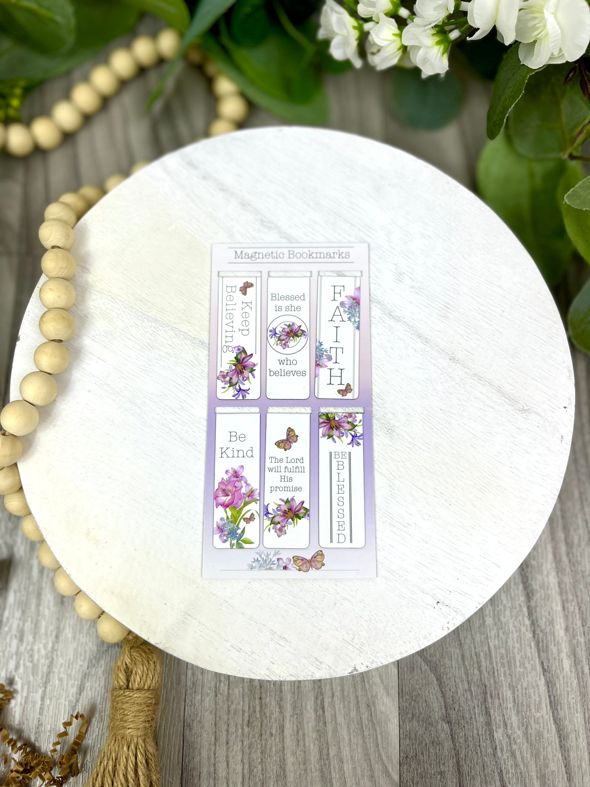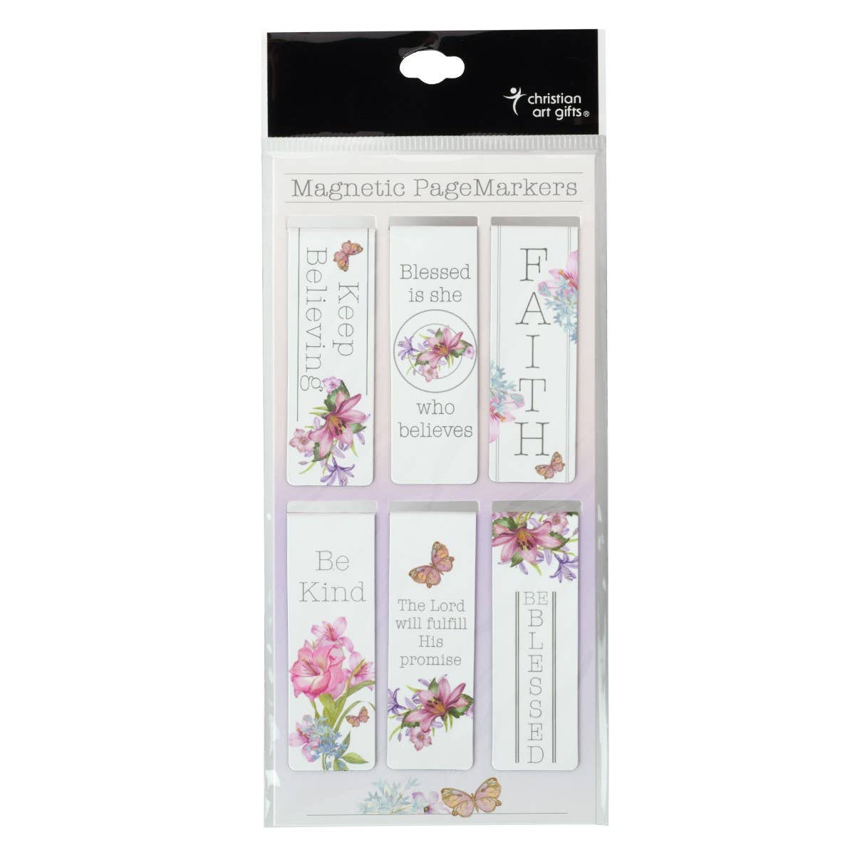 Share the beautiful reminder that all blessings come from the LORD with the Blessing from Above Magnetic Bookmark Set. Your friends and family can use these Christian magnetic bookmarks to mark a page in a book or they can even use them as paper clips! Add a little inspiration and blessing to your organization and reading time! The Blessing From Above Magnetic Bookmark Set features 6 floral and butterfly designs printed on small magnetic bookmarks with inspiring words.
