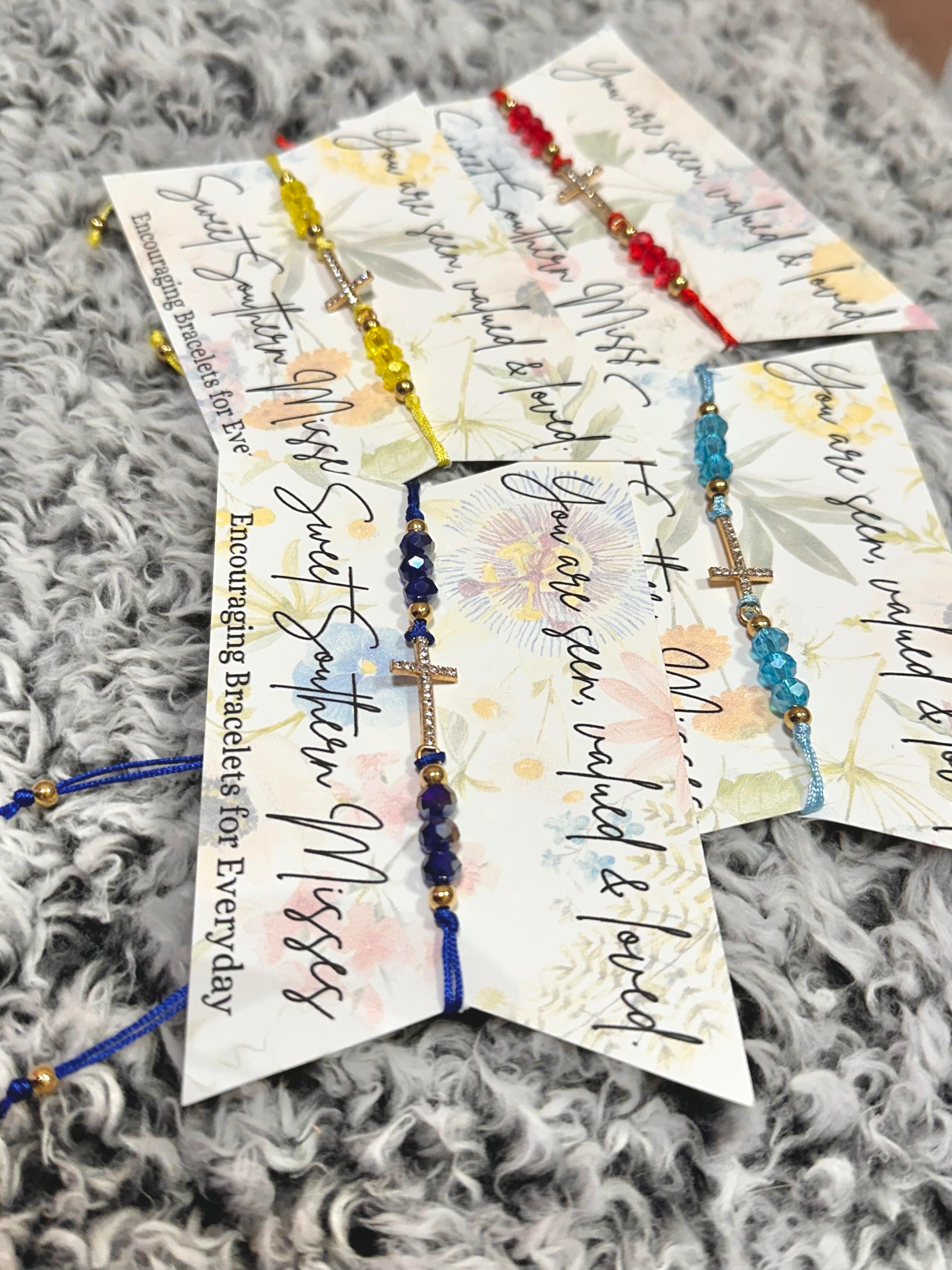 Carry a little reminder of faith wherever you go with our Surprise Faith Bracelet. Each bracelet features a beautiful cross charm symbolizing hope, strength, and grace — with a surprise style or color inside every package!