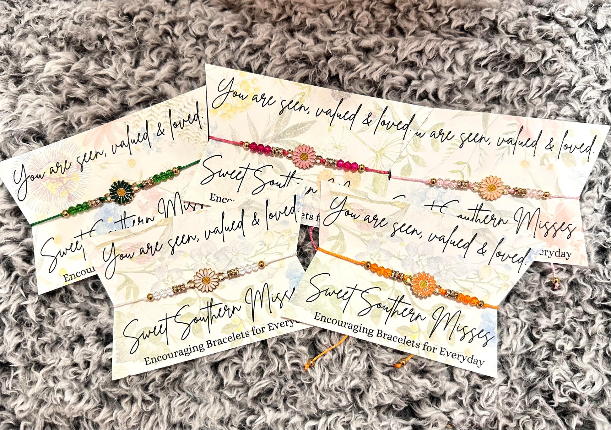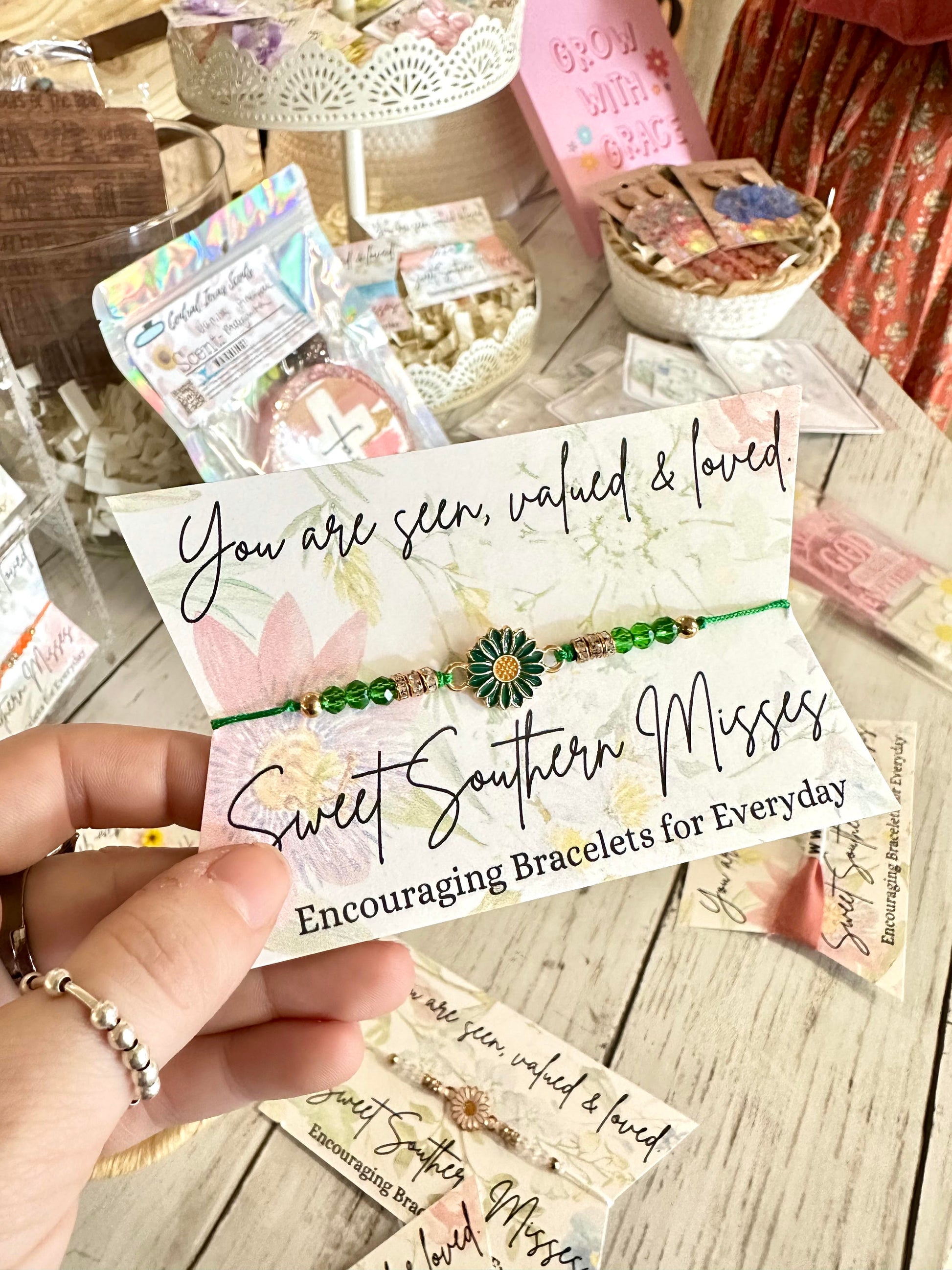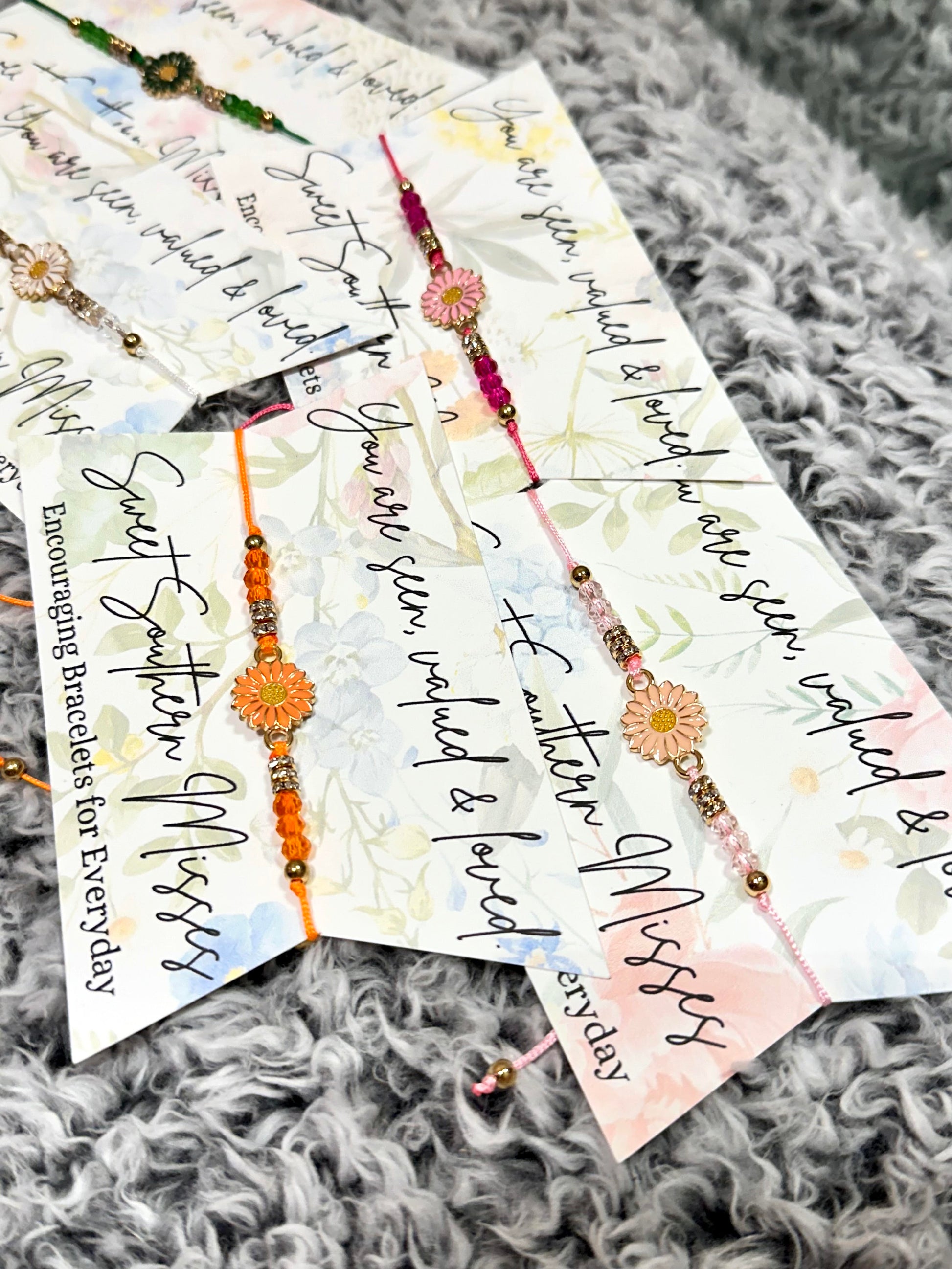 Introducing the Faith Flower Bracelet, a delightful blend of beauty and inspiration. This charming bracelet features a floral charm that symbolizes growth and renewal, serving as a reminder of faith’s blossoming presence in our lives. Crafted with vibrant beads and an adjustable fit, it’s perfect for any wrist. Whether worn alone or stacked with other favorites, this bracelet radiates positivity and encouragement. Gift it to someone special or wear it as a personal reminder to embrace your journey and share your light with the world!