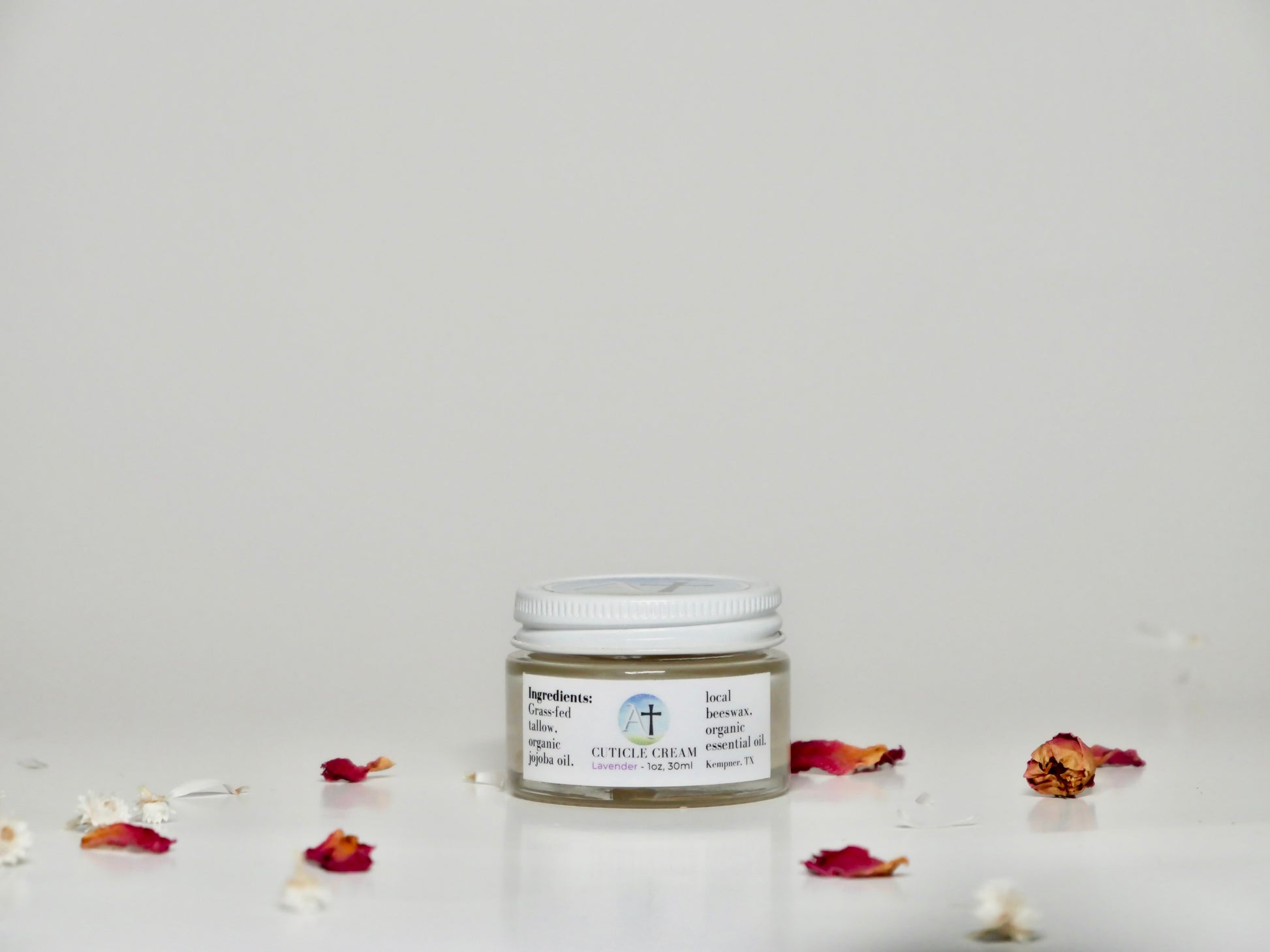 It is made from grass-fed grass-finished tallow, organic jojoba oil, organic beeswax, and organic essential oil. It is perfect for applying before bed or while watching TV. It will leave cuticles soft, supple, and repaired.